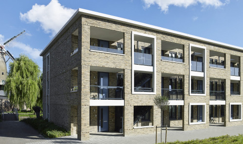 Het appartementengebouw bestaat uit 3 verdiepingen. Op de begane grond bevinden zich 10 appartementen en een cluster van 34 inpandige bergingen. Deze bergingen bevinden zich rondom het hoofdentree van het gebouw.